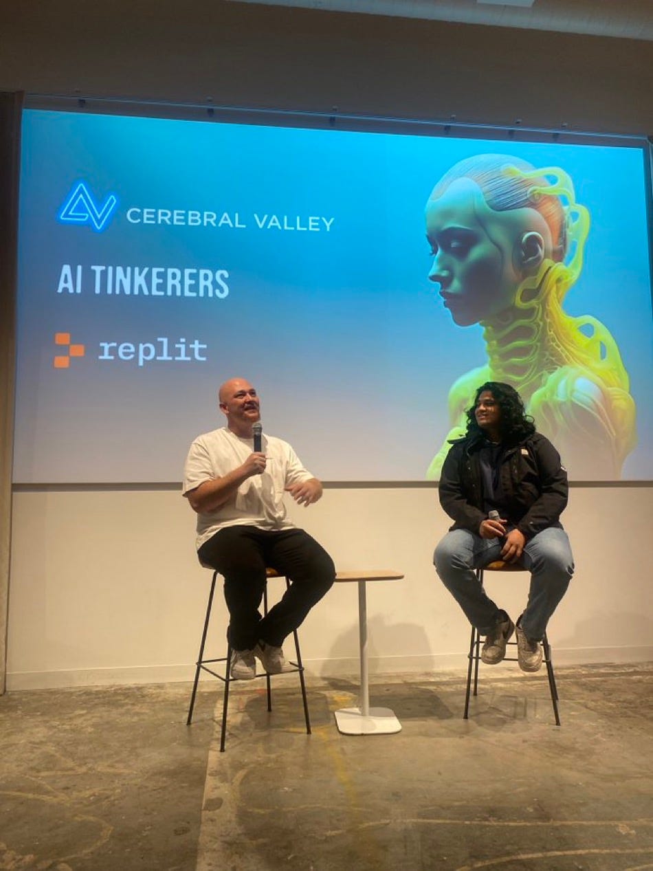 This was an AI Tinkerers and Cerebral Valley event organized by Alex Graveley, Alex Tseng, Mickey Friedman, and Rahul Sonwalkar and sponsored by Replit. The event started with a fireside chat with Amjad Masad (CEO of Replit). Afterwards there were 5 minute AI demos. The event was filled with SF’s top AI enthusiasts, hackers, researchers, and engineers!